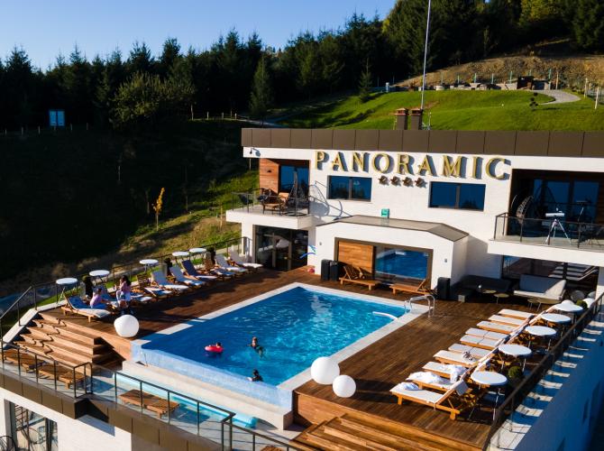 Hotelul Panoramic are 4 stele, condiții de top și-o spectaculoasă piscină in exterior. Cei care aleg să se cazeze aici au parte de răsfăț maxim: saună umedă și uscată, jacuzzi, masaj și chiar zonă pentru fitness in aer l...
