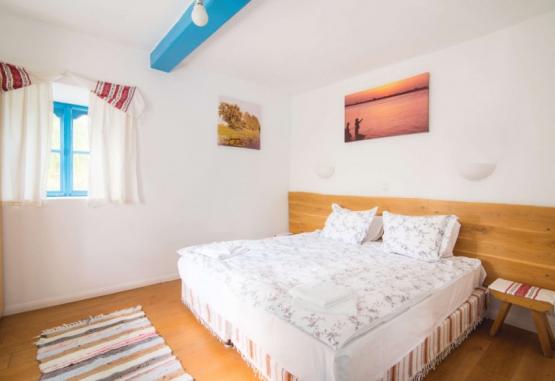 Pensiunea La Iaz se afla in Delta Dunarii in localitatea Murighiol, langa Pensiunea 5 Chirpici.Descriere: Locatia ofera doar servicii de cazare si asigura accesul la serviciile si facilitatile de la Pensiunea 5 Chirpici, cum ar fi restaurantul ce va va rasfata cu delicii culinare specifice locului, zone de relaxare, ferma si solar, biciclete, o piscina in aer liber sezoniera, o gradina si un lounge comun. Proprietatea are un bar, o terasa, iar oaspetii au la dispozitie internet Wi-Fi gratuit si parcare privata.Receptia se afla in cladirea Arca lui Noe, iar restaurantul in cladirea Arca lui Noe de la Pensiunea 5 Chirpici.Camere:Camerele 1-2-3-4 se afla la etaj, dispun de pat matrimonial, baie cu dus, fara balcon sau terasa. Camera 1 este mai spatioasa si include un pat suplimentar.Camera 5 se afla la parter, dispune de pat matrimonial, baie cu dus si terasa.Camerele sunt dotate cu dulap pentru haine, televizor cu ecran plat, frigider, climatizare, baie proprie cu dus si articole de toaleta.Restaurant: Mesele se servesc in restaurantul propriu de la Pensiunea 5 Chirpici care se afla in imediata vecinatate.Facililati:Piscina exterioara, loc de joaca pentru copii la Pensiunea 5 Chirpici din imediata apropiere.O zona interioara pentru divertismentul copiilor. Se poate juca tenis de masa in curte, va puteti bucura de natura si de ferma de animale.Zona este populara pentru pescuit, plimbari private cu barca sau caiace pe lacuri.