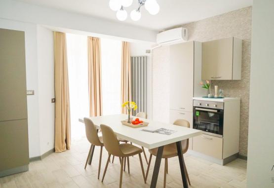 APARTHOTELUL ALEZZI BEACH RESORT este situat in Mamaia Nord-Navodari la 50 m de plaja. Acesta dispune de apartamente cu vedere la mare. Tabara de vacanta din Navodari este la 2,8 km, iar plaja Kudos se afla la 5 km.Dotari si serviciiAcesta ofera acces gratuit la SPA (aici se gaseste sal de fitness, piscina interioara incalzita, sauna umeda si uscata si jacuzzi) si piscine exterioare, gradina, bar si terasa, spatiu de joaca pentru copii. MASA: aparthotelul nu are restaurant propriu, dar masa se poate servi a la carte la restaurantele din resort.Dotari camere: Garsoniera superioara -este compusa dintr-un pat matrimonial, TV cu ecran plat , aer conditionat, chicineta dotat cu plita electrica, frigider, cuptor cu microunde, prajitor de paine, cana fierbator, ustensile de bucatarie, zona de luat masa, zona de relaxare si terasa cu vedere spre mare. Suprafat de 48 mp.Apartament cu 2 dormitoare si living: este compus din doua camere cu pat matrimonial si living cu canapea extensibila, TV cu ecran plat , aer condittonat, chicineta dotat cu plita electrica, frigider, cuptor cu microunde, prajitor de paine, cana fierbator, ustensile de bucatarie, zona de luat masa, 2 bai, zona de relaxare si terasa cu vedere spre mare. Suprafata de 80 mp.Apartament cu 1 dormitor si living: este compus dintr-o camera cu pat matrimonial si living cu canapea extensibila, TV cu ecran plat, aer conditionat, chicineta dotata cu plita electrica, frigider, cuptor cu microunde, prajitor de paine, cana fierbator, ustensile de bucatarie, zona de luat masa, zona de relaxare si terasa cu vedere spre mare. Suprafata de 53 mp.Toate baile sunt dotate cu cada sau dus, prosoape, uscator de par si articole de baie. Facilitati copii In camera cu 2 adulti:- apartament 1 dormitor + living - 4 persoane (adulti sau copii)- apartament 2 dormitoare + living - 6 persoane (adulti sau copii)- garsoniera superior - 3 persoane (adulti sau copii)