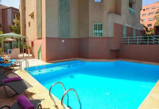 The Amina Resort is located in Marrakech’s residential l’Hivernage area. It has an outdoor swimming pool and air-conditioned apartments, each with a balcony, satellite TV and a private bathroom.