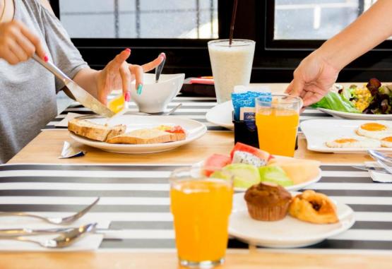 Mesele pot fi comandate la restaurantul proprietătii. Ca alternativă, oaspeții pot găsi o varietate de restaurante, baruri și magazine la cațiva pași.
