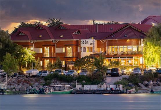 Casa Teo este situată pe malul drept al brațului Sf. Gheorghe al Dunării, la 29 km de Tulcea. Aceasta oferă camere cu aer conditionat, TV prin satelit si minibar.Accesul la internet WiFi este disponibil gratuit in zonele publice, iar restaurantul spatios este prevăzut cu ferestre mari cu vedere la Delta Dunării. Oaspeții pot savura mancăruri tradiționale romanești, precum și specialități de pește.Casa Teo are o barcă pentru 12 persoane și 2 bărci pentru 4 persoane, toate conduse de personal cu experiență și potrivite pentru excursii in Deltă.