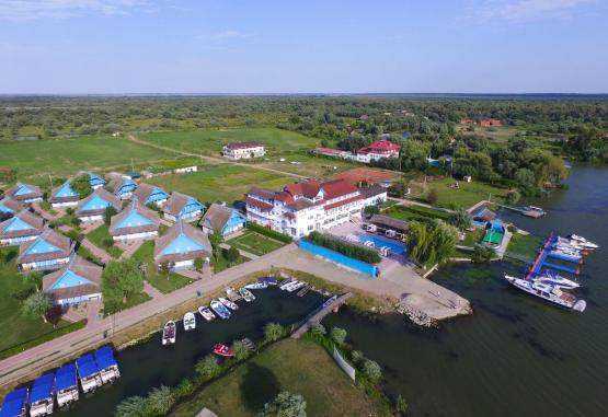 Localizare:Pe o insulă din Delta Dunării, complexul hotelier Cormoran oferă piscine in aer liber, o zonă de relaxare cu saună si un centru de fitness. Sunt disponibile 2 restaurante cu meniuri bogate, iar in cadrul proprietătii puteti degusta peste proaspăt.Proprietatea organizează transferuri cu barca de la Uzlina. De asemenea, sunt disponibile excursii, tururi cu barca la Marea Neagră, observarea de păsări, echitatie si pescuit, la un cost suplimentar.Conexiunea Wi-Fi este gratuită in zonele publice ale proprietătii. Aeroportul si gara din Tulcea se află la aproximativ 30 de minute de mers cu masina de Murighiol, unde proprietatea poate organiza transfer cu barca, la un cost suplimentar.Cazare:Toate camerele complexului Cormoran au aer conditionat si balcon. Fiecare cameră are un TV si o baie privată cu dus, uscător de păr si articole de toaletă gratuite.Structura de cazare si masa:Hotel Cormoran36 camere (8 cu pat matrimonial, 2 cu pat matrimonial si 1 canapea extensibila, 5 triple, restul twn) cu baie proprie, aer conditionat, TV, frigider, bar, terasa in aer liber, sala fitness, dotare 3 stele. Piscina in aer liber in fata hotelului.Vile Tip A9 vile, fiecare cu 4 camere cu intrare separata, dotate cu 2 paturi + 1canapea extensibila, aer conditionat, TV, grup sanitar, frigider, terasa, dotare 3 stele.Centru agrementRestaurant 250 locuri; terasa acoperita fumatori 70 locuri; bar-discoteca 70 locuri; Sali conferinta (3 x 25 locuri, 1 x 40 locuri, 1 x 200 locuri). Piscina 180mp in aer liber in fata Centrului de Agrement, bar piscina