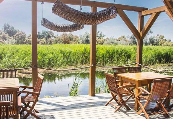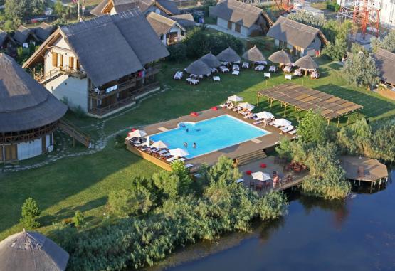Localizare: in Sfantu Gheorghe, locul unde Dunarea intalneste Marea Neagra, Resortul 4* Green Village inseamna deopotriva o vacanta pe litoral si o evadare in inima Deltei.Resortul Green Village ocupa o suprafata de cca. 30.000 mp si dispune de 89 de camere, din care 30 de apartamente cu o camera dubla si living, 1 apartament cu doua camere duble si living, 50 de camere duble si 8 garsoniere.Resortul Green Village accepta animale de companiede talie mica, gratuit si cu informarea PrestatoruluiServicii masa:Complexul dispune de: restaurant cu terasa (capacitate totala: 240 locuri), bistro, amplasat langa piscina exterioara.Oaspetii au acces si la Complexul Multifunctional cu 3 sali de cinema/conferinte ( sala 1: 120 locuri, sala 2: 60 locuri, sala 3: 40 de locuri). Dotarile sunt ultramoderne: sistem audio 5+1, videoproiector, mixer, microfoane, climatizare si acces internet wireless in tot resortul.Activitati entertainment center: biblioteca, biliard,sah, table, remi,darts, tenis de masa, piscina in aer liber, jacuzzi in aer liber,Activitati in cadrul centrului spa: sauna, cabinet masaj.Kids club: aminatie copii, jocuri interactive si atelier de creatie coordonate de o educatoare, locuri de joaca in aer liber.Marina Resortului este dotata cu barci rapide, barci pescaresti si caiace.Excursiile pe canalele si lacurile din acesta zona, unica in Europa, sunt memorabile.Pescuitul pe Dunare, pe lacuri sau pe canale, reprezinta un important punct de interes. Capturile de mari dimensiuni nu sunt rare ( in fiecare an, mai ales primavara, se prind somni de 60-80 kg ).Birdwatching-ul sau vanatoarea fotografica reprezinta alternative spectaculoase pentru turistul specialist sau incepator.Plaja se intinde, de la varsarea Dunarii in Mare, pe o suprafata de 30 km.ZONA 1 LEBADA SI PELICANZona "Lebada" cuprinde complexul de Vile J, K, L (6 apartamente), formate din 1 dormitor la etaj si 1 living la parter.In zona "Pelicanul" se gasesc Vilele 3-5, fiecare avand 10 camere duble, Vilele M-O, cu 6 apartamente, piscina exterioara, centrul SPA (1 salon masaj, 1 sauna), restaurantul principal cu o capacitate totala de 240 locuri si barul brasserie, centrul de distactii cu cinema, biliard, tenis de masa, darts, table, sah, carti de joc, biblioteca, loc de joaca pentru copii la interior si la exterior: cort special amenajat, masute si scaune din lemn, tablita cu creta, diverse jucarii, ansamblu de topogan si leagan, tunel pentru copii, piscina cu apa pentru copii, centrul de afaceri si complexul multifunctional cu 3 sali de conferinta.ZONA 2 - STARCUL ALBZona Starcul alb include Vila 7, Vila 8 si complexul de vile A-I, insumand 18 apartamente. Vila 7 este formata din 2 dormitoare la etaj, si living la parter, legatura dintre ele facandu-se printr-o scara interioara. Vila 8 este formata la randul ei din 8 camere duble cu paturi twin, 4 la etaj si 4 la parter fiecare avand un living comun.ZONA 3 - EGRETAZona Egreta cuprinde Vila 1 si Vila 2, fiecare avand 10 camere duble, o sala de conferinta multifunctionala, cu o capacitate de maxim 100 de locuri si jacuzzi exterior (cca. 91 mp).ZONA 4 - MARINAZona Marina cuprinde accesul barcilor proprii, persoanelor cazate in cadrul Resortului Green Village.Accesul ambarcatiunilor in Rezervatia Biosferei Delta Dunarii se face pe baza unei autorizatii de acces de la ARBDD TulceaCazare:Camerele au o suprafata cuprinsa intre 25 si 40 de mp fiecare. Apartamentele au la parter un living de cca. 20 mp, cu 2 fotolii de ratan, ne-extensibile si o terasa de cca. 15 mp iar la etaj un dormitor de cca. 30 mp. Camerele au minibar si aer conditionatTerasele camerelor au vedere spre Dunare si Mare.