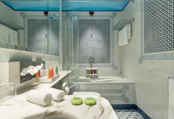 In perioada sezonului de varf, oaspetii beneficiază de acces gratuit la plajă, cu umbrele de soare, sezlonguri si prosoape de plajă gratuite. In interior există lounge-uri cu mobilier de epocă, scări din marmură si candelabre din cristal.