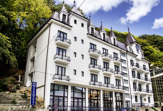 Localizare:In centrul statiunii Slanic Moldova, foarte aproape de izvoare. Este un hotel „boutique”, fiecare camera este personalizata si are stilul, luxul si rafinamentul aristocratiei de altadata.Hotelul a castigat premiile: „Luxury Boutique Hotel of the Year 2016!” si „Luxury Design Hotel Award of the year 2017” si a primit permisiunea de a lucra sub sigla „Luxury Travel Guide”, premierile avand loc la Londra. Deasemenea a fost nominalizat la categoria hotelurilor de 4 stele pentru turismul de agrement la TopHotel Romania.Decorarea hotelului a fost facuta de arhitecti si designeri specialisti in restaurarea si decorarea castelelor, astfel incat, trecandu-i pragul te intorci in timp si simti parfumul epocii de altadata.Printre clientii care ne-au trecut pragul se numara: Armand Assante, Lior Ashkenazi,Sun Hojae, Catalin Catoiu (Teava), modelul casei de moda Chanel Ana Maria Bucura Zegheru, Andrei Boncea, Excelenta Sa Davoian Tatul, consulul Armeniei din Moldova, fotbalistul roman Adrian Cristea, Adrian Porumboiu, Excelenta sa domnul Iurie Renită ambasador al Republicii Moldova Bela Karoly (antrenorul Nadiei Comaneci), Marinela Avadanei (cantareata), Ramona Gabor (sora Monicai Columbeanu) si altii.Primavara, vara si toamna va invitam sa savurati o bautura reconfortanta si un moment de liniste in mijlocul naturii, pe terasa hotelului.Incepand cu iarna 2014, dupa ce s-a finalizat si omologat partia de schi, puteti sa va bucurati de zapada parcurgand traseul partiei, precum si sa admirati din telescaun privelistea superba a brazilor inzapeziti.In baza contractului cu Sanatoriul Balnear, oaspetii hotelului nostru pot beneficia contra cost de diverse proceduri medicale benefice in tratamentul multor tipuri de afectiuni, pe tot parcursul anului.Cazare:Cladirea initiala este o cladire de epoca, inscrisa in patrimoniul national al Romaniei, construita in anul 1937, iar in anul 2012 a fost extinsa cu 20 camere, pastrand acelasi stil arhitectural, in prezent hotelul avand 35 camere.