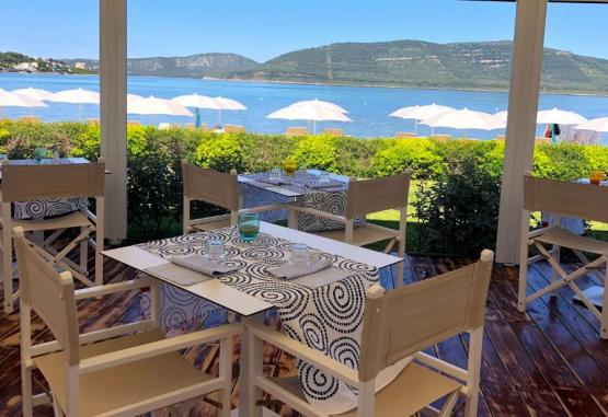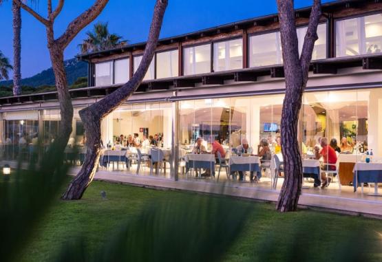 Micul dejun zilnic de la Hotelul Corte Rosada este servit in sala de mese cu aer condiționat, iar cina à la carte la restaurantul cu vedere la mare.