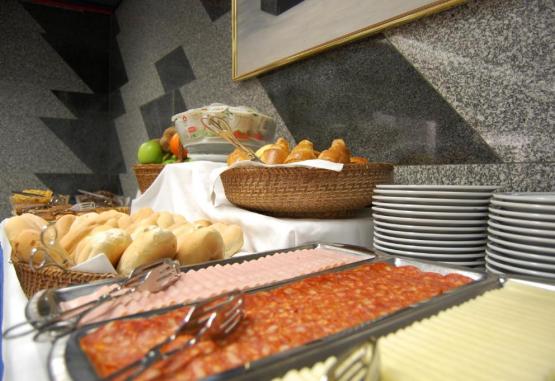 Oaspetii pot savura un mic dejun tip bufet, in sala de mese a hotelului sau in camera proprie. De asemenea, in incintă există un bar, care serveste băuturi pană seara tarziu.