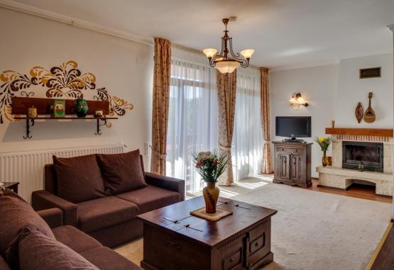 Localizare:Situat in Sinaia, hotelul Regal oferă apartamente spatioase mobilate elegant, cu vedere pitorească si cadă spa. Hotelul asigură acces gratuit la internet WiFi si parcare gratuită.Barul hotelului serveste cafea proaspătă, ceai si diverse băuturi, intr-o atmosferă primitoare.Hotel Regal are o terasă in aer liber cu o zonă de grătar. Cazare:APARTAMENT STANDARD:Cu o suprafata de 50 mp, acest tip de apartament dispune de un dormitor, un living cu o canapea extensibila si TV-LCD, o bucatarie americana complet utilata, o baie cu Jacuzzi, doua balcoane si Internet Wireless, toate utilitatile pe care le doriti atunci cand plecati la munte. Apartamentele Standard sunt ideale pentru cei care vin in Sinaia in interes de serviciu sau pentru cei care cauta linistea oferita de aceasta zona. Va punem la dispozitie sapte Apartamente Standard.APARTAMENT FAMILIAL:Avand o suprafata de 90 mp, Apartamentul Familial este impartit in doua dormitoare, living cu o canapea extensibila si TV-LCD, o bucatarie americana complet utilata, o baie cu Jacuzzi, o baie cu cabina de dus, doua balcoane si Internet Wireless. Un spatiu luxos si confortabil, ideal pentru familiile care doresc sa-si petreaca sejurul la munte, in Sinaia. Apartamentele Familiale, in numar de sase, va ofera toate conditiile de care aveti nevoie.APARTAMENT DUPLEX:Intins pe doua nivele, Apartamentul Duplex are o suprafata foarte mare, de 210 mp, impartita in trei dormitoare cu bai proprii cu Jacuzzi, living cu canapea extensibila si semineu cu lemne, o bucatarie americana complet utilata, un lounge la etaj, o baie si Internet Wireless. De asemenea, apartamentul dispune de 5 balcoane, cu vedere panoramica pe 3 laturi. Hotel Regal are doua astfel de apartamente, ideale pentru familiile numeroase sau grupurile de prieteni.