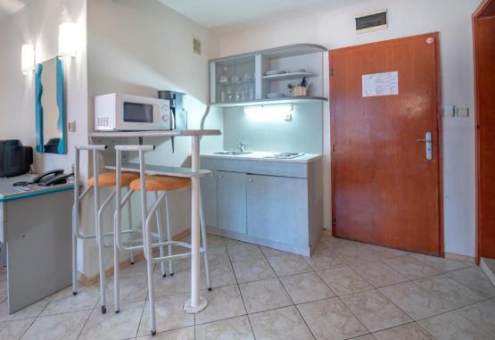 STUDIO 2+1/ 2+2/ 3+1: Approx. 25 m². The studios have three single beds and one extra bed (camp bed type). The maximum occupancy is 3 adults with 1 child.