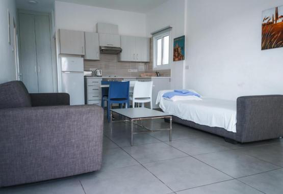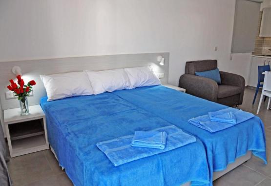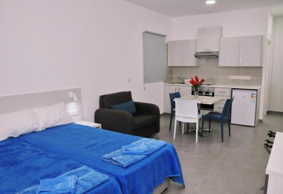 Toate studiourile si apartamentele au aer conditionat, ferestre din podea pană in tavan și balcon privat. Acestea includ o bucătărie in plan deschis, utilată cu frigider, cuptor și prăjitor de paine, și o zonă de relaxare cu TV cu ecran plat de 32 inch. Toate apartamentele au dormitor separat, prevăzut cu aer conditionat, si baie privată. La cerere, se oferă uscător de păr si masă de călcat.