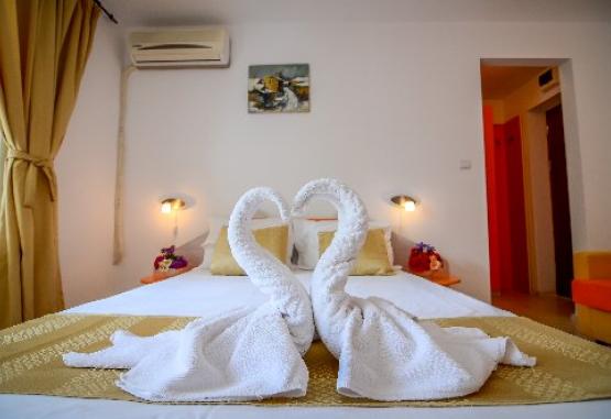 COMPLEX MAJESTIC este situat in partea de nord a statiunii Jupiter, la aproximativ 180 m de plaja si face parte alaturi de alte hoteluri din grupul Perla Majestic. Va informam ca incepand cu sezonul 2021 se va incasa la check-in taxa de statiune, in valoare de 5 lei/persoana/zi, conform HCL 283/23.12.2020 . Vor fi taxate toate persoanele cu varsta de 18 ani impliniti.Dotari si serviciiHotel Majestic este clasificat la 3* si are 162 de camere duble si 8 apartamente, piscina exterioara(lungime de 22m si adancime de1.55-1.80m), foisor, gradina de vara, restaurant si terasa, 3 sali de conferinte, loc de joaca pentru copii. Pe terasa se organizeaza spectacole de divertisment. Hotelul nu detine plaja inchiriata, insa turistii au acces la plaja publica sau plaja amenajata (cu umbrele si sezlonguri contra cost).Receptia hotelului pune la dispozitia turistilor cutie de pastrare valori si camera de bagaje.Parcare gratuita in limita disponibilitatii.Hotelul nu accepta animale de companie.Accesul la piscina este gratuit numai pentru turistii hotelului in intervalul orar 09.00 - 18.00.Servicii masaMASA: restaurant propriu, mic dejun, pranz si cina in sistem bufet suedez.Mic dejun inclus in tariful de cazare;Demipensiune (mic dejun + pranz) - suplimentul demipensiune este obligatoriu in perioada 05.07.2025 - 18-.07.2025 si 18.08.2025 - 31.08.2025.All-inclusive (mic dejun + gustare + pranz + gustare + cina) - suplimentul all inclusive este obligatoriu in perioada 19.07 - 17.08.2025 .Alte informatii: persoanele care au un regim alimentar dietetic (care se poate dovedi printr-un document medical), vegetarian sau cei care tin post, sunt rugati sa informeze receptia in momentul cazarii. Hotelul va incerca sa tina cont si sa indeplineasca aceste solicitari, fara insa a se obliga.CONCEPT ALL INCLUSIVE08:00 - 10:00 Mic dejun sistem bufet suedez (include diferite tipuri de omleta, branzeturi, mezeluri, legume, dulciuri, racoritoare, ceai, cafea);11:00 - 12:00 Gustare (produse de patiserie);13:00 - 15:00 Pranz sistem bufet suedez (include supe, ciorbe, mancare gatita, garnituri, salate, legume, fructe, dulciuri) 17:00 - 18:00 Gustare (produse de patiserie);18:30 - 20:00 Cina sistem bufet suedez (include mancare gatita, gratar, garnituri, salate, legume, fructe, dulciuri).Orele meselor pot suferii modificari.Bauturi incluse: Bauturile non-alcoolice neimbuteliate (apa, racoritoare, ceai, cafea) si alcoolice neimbuteliate (bere draft, vin de mas draft alb sau rosu, lichior, vodca, coniac) pot fi servite (numai pentru pachetele all inclusive), se pot servi in restaurant sau in locurile special amenajate intre orele 10:30 - 20:30.Toate bauturile racoritoare sau alcoolice imbuteliate sunt contra cost.CONCEPT DEMIPENSIUNE08:00 - 10:00 Mic dejun sistem bufet suedez (include diferite tipuri de omleta, branzeturi, mezeluri, legume, dulciuri, racoritoare, ceai, cafea);13:00 - 15:00 Pranz sistem bufet suedez (include supe, ciorbe, mancare gatita, garnituri, salate, legume, fructe, dulciuri) Orele de masa pot suferi modificari.Bauturi incluse: Bauturile non-alcoolice neimbuteliate (apa, racoritoare, ceai, cafea) si alcoolice neimbuteliate (bere draft, vin de masa draft alb sau rosu, lichior, vodc, coniac) pot fi servite numai in timpul mesei de pranz in restaurant sau in locurile special amenajate intre orele 13:00 - 15:00.Toate bauturile racoritoare sau alcoolice imbuteliate sunt contra cost.Dotari camereCamera dubla, cu o suprafata de 14 mp, detine pat matrimonial (140x200 cm) sau paturi twin (90x200 cm), baie cu dus, balcon, TV, minibar, AC, internet. Poate acomoda 2 adulti, 2 adulti + 1 copil (0 pana la 17 ani) sau 2 adulti si 2 copii (0 pana la 13 ani). Camera dubla in regim single, cu o suprafata de 14 mp, detine un pat matrimonial sau twin, baie cu dus, balcon, internet, AC, minibar, TV. Poate acomoda 1 adult, 1 adult + 1 copil (0 pana la 13 ani).Apartamentul, cu o suprafata toatala de 32 mp, formata din living cu canapea extensibila si dormitor cu pat matrimonial, baie cu dus, internet, minibar, AC, TV, si balcon. Poate acomoda 2 adulti, 3 adulti + 1 copil (0 pana la 6 ani) sau 2 adulti si 2 copii (0 pana la 13 ani).Facilitati copiiIn camera dubla cu 2 adulti:- 1 copil de la 0 ani pana la 6 ani beneficiaza de gratuitate la cazare si masa in functie de serviciul achizitionat de adult (fara pat suplimentar asigurat);- Al 2 lea copil de la 2 ani pana la 6 ani - achita valoarea mesei la un tarif special in functie de serviciul achizitionat de adult: MD/DP/AI; - achita valoarea patului (obligatoriu) la un tarif special in functie de sezon si se acorda un pat suplimentar;- 1 copil de la 7 ani pana la 13 ani - achita in mod obligatoriu valoarea mesei (la un tarif special) de acelasi tip cu serviciul achizitionat de adultii insotitori: MD/DP/AI - achita optional valoarea patului in functie de sezon si se acorda un pat suplimentar;- 2 copii de la 7 pana la 13 ani - achita fiecare in mod obligatoriu valoarea mesei (la un tarif special) de acelasi tip cu serviciul achizitionat de adultii insotitori: MD/DP/AI - achita valoarea patului (obligatoriu) la un tarif special in functie de sezon si se acorda un pat suplimentar.Copiii peste 14 ani sunt considerati adulti si achita valoarea mesei integral in functie de serviciul achizitionat de adult, precum si pat suplimentar.Numarul maxim de copii admis in camerele duble este de 2 copii, avand varsta maxima de 13 ani.In camera se poate introduce doar un pat suplimentar.