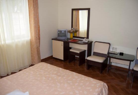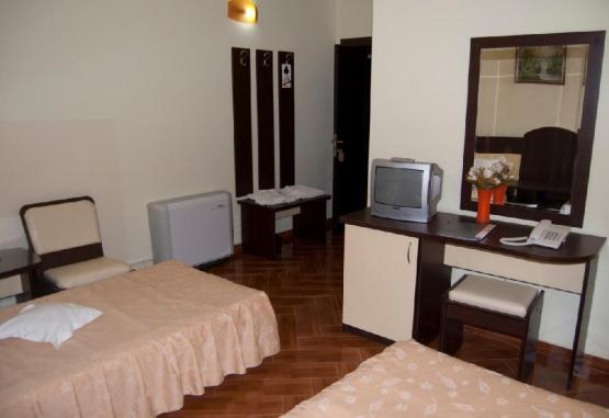 handicap sunt scutite de la plata.Dotari CamereToate spatiile de cazare sunt dotate cu pat matrimonial (160x200), aer conditionat, telefon, minibar, LCD tv cu cablu, baie proprie cu cabina de dus si cosmetice hoteliere, pardoseala de gresie. Unele camere dispun de balcon. Repartizarea camerelor se face la receptie, in functie de disponibilitatea la momentul cazarii.Camera dubla are o suprafata de 20 mp. Camera dubla deluxe are acelesi dotari ca si camera dubla, insa este mai spatioasa.Apartamentul se compune din doua dormitoare matrimoniale (unul cu pat de 160x200, celalalt cu pat de 140x200), separate cu usa, 2 bai cu cabina de dus. Unul dintre dormitoare este mai mic si are geam Velux. Aer conditionat si minibar sunt in dormitorul mai mare, iar tv este in fiecare camera. Suprafata 36 mp. Patul suplimentar este tip pliant (80x190). Alte SpecificatiiOra check-in: 18:00 Ora check-out: 12:00Pentru acest hotel se achita la receptie in ziua cazarii, o Taxa de statiune in valoare de 3 lei/adult/ziServiciiFier de calcat si uscator de par sunt disponibile la receptie, in functie de disponibilitate.In timpul sejurului, nu se asigura servicii de curatenie in camera.Nu se accepta cazarea cu animale de companie.Facilitati copii in camera dubla:- 2 adulti si 1 copil 0-6.99 ani beneficiaza de gratuitate la cazare, fara pat suplimentar.- 2 adulti si 1 copil 7-10.99 ani achita 75 lei/zi si beneficiaza de pat suplimentar.- 2 adulti si 2 copii (0-6.99 ani + 7-10.99 ani) - primul copil beneficiaza de gratuitate la cazare, fara pat suplimentar, iar al 2-lea copil achita 75 lei/zi si beneficiaza de pat suplimentar.Capacitate maxima de cazare in camera dubla: 2 adulti + 2 copii (0-6.99 ani si 7-10.99 ani)Capacitate maxima de cazare in suita: 2 adulti + 2 copii 0-13.99 ani.