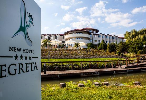 Localizare:Este accesibil cu autoturismul (45 km de Tulcea). Cladirea hotelului a fost construita in anul 2002 si complexul a fost ulterior extins si modernizat in anul 2012.In prezent, pe langa spatiile de cazare, New Hotel Egreta pune la dispozitia turistilor mai multe dotari pentru recreere si relaxare: restaurant cu terasa, gradina amenajata, piscina cu sezlonguri si umbrele, loc de joaca pentru copii, teren de sport, sala de jocuri cu masa de biliard, bowling, darts si tenis de masa.New Hotel Egreta detine ambarcatiuni proprii cu care se pot organiza excursii in Delta Dunarii sau partide de pescuit.Dotari generale:- restaurant, terasa, gradina- loc de joaca pentru copii- teren de sport, sala de jocuri- ponton- sala de conferinte- piscina- parcareCazare:31 camere duble, 1 apartament.Camerele duble sunt dotate cu aer conditionat, baie proprie, minibar, televizor, vedere spre gradina, halate de baie, internet wireless.Apartamentul are zona de relaxare (canapea) si dormitor, balcon si aceleasi dotari ca si camerele duble.