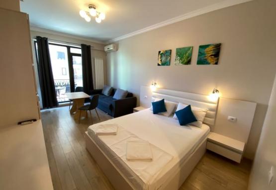 Solid Residence Mamaia este situata pe malul lacului Suitghiol, la 250m de plaja, in zona centrala a Cazinoului, aproape de principalele atractii turistice.Va informam ca incepand cu sezonul 2023, se va incasa la receptie in momentul cazarii taxa de statiune, reprezentand 1% din valoarea tarifului de cazare fara T.V.A, pentru fiecare noapte de cazare conform HCL NR. 614/27.12.2022DotariCladirea, cu arhitectura minimalista, este deservita de lift, iar la parter dispune de un supermarket cu program non stop.Solid Residence ofera parcare privata gratuita, in limita locurilor disponibile. Dotari camereFiecare apartament are bucatarie proprie utilata cu masa, prajitor de paine, plita de gatit, cuptor, ustensile de bucatarie, cana fierbator, masina de spalat, cuptor cu microunde, frigider.Studiourile se compun dintr-un open space cu un pat matrimonial (160x200) si o canapea extensibila (120x190), bucatarie echipata, baie cu cabina de dus. Acestea au o suprafata de 35 mp.Apartamentele cu un dormitor se compun din living cu canapea extensibila, dormitor cu pat matrimonial (160x200), bucatarie echipata, baie cu cada sau cabina de dus si balcon mobilat (masa si scaune). Camerele sunt separate cu usa, iar aer conditionat exista doar in living, dar TV este in ambele incaperi. Acestea au o suprafata de 50 mp. Apartamentele cu 2 dormitoare au living cu canapea extensibila, doua dormitoare cu pat matrimonial, baie cu cada/cabina de dus, balcon mobilat si bucatarie echipata. Toate cele 3 camere detin TV si usi, insa aer conditionat este doar in living.Acestea au o suprafata 65 mp. Capacitate Camere:Studio - 4 adulti;Apartament cu 1 dormitor - 4 adulti;Apartament cu 2 dormitoare - 6 adulti.
