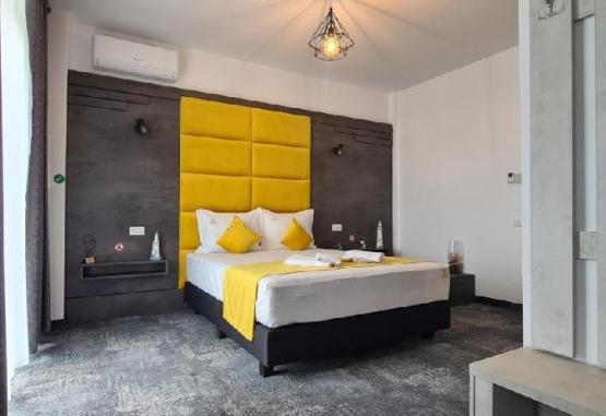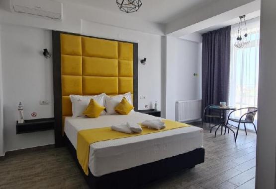 Hotel Yamada - adults only 3*** Mamaia Nord este situat in zona taberei Navodari, in Mamaia Sat, in apropiere de lacul Suitghiol si la 700 metri de plaja.Va informam ca incepand cu sezonul 2023, se va incasa la receptie in momentul cazarii taxa de statiune, reprezentand 1% din valoarea tarifului de cazare fara T.V.A, pentru fiecare noapte de cazare conform HCL NR. 614/27.12.2022Dotari cerere si serviciiAparhotel Yamada este o locatie destinata exclusiv adultilor, astfel ca accesul copiilor nu este permis. Aparhotel Yamada - adults only dispune de gradina, zona de lobby la parter, precum si terasa cu foisor.Oaspetii beneficiaza gratuit, din partea casei, de 2 sticle de apa plata si 2 capsule de cafea/zi.Animalele de companie nu sunt acceptate.Parcarea privata este gratuita in limita locurilor disponibile. Servicii masaMicul dejun se serveste in sistem catering ( breakfast box/camera, cu omleta, ochiuri, branza, castraveti, rosii, 4 sandwich-uri toast, 2 chifle).Dotari camereSpatiile de cazare sunt dotate cu pat matrimonial (160x200), aer conditionat, tv, seif, minibar, espressor, baie cu cabina de dus, uscator de par si obiecte de toaleta, terasa/balcon.Camerele duble cu balcon sunt situate la etajul 1. Suprafata 24 mp.Camerele duble cu terasa sunt situate la etajul 1 si 3. Terasa e generoasa cu o suprafata de 20-30 mp. Suprafata 26 mp.