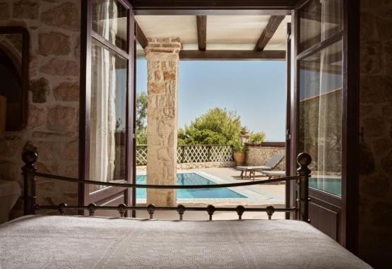 Vila are plafon cu grinzi din lemn și mobilier de epocă personalizat, 3 dormitoare, 3 livinguri, zonă de luat masa și o bucătărie complet utilată. Dotările standard includ aer, un șemineu, CD / DVD player și TV prin satelit.