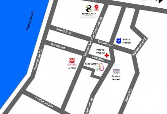 Cele mai populare puncte de interes situate in apropiere de Zenseana Resort & Spa includ plaja Kalim, centrul comercial Jungceylon și stadionul de box Patong. Cel mai apropiat aeroport este Aeroportul Internațional Phuket, situat la 39 km. Hotelul oferă un serviciu de transfer de la/ la aeroport, la un cost suplimentar.